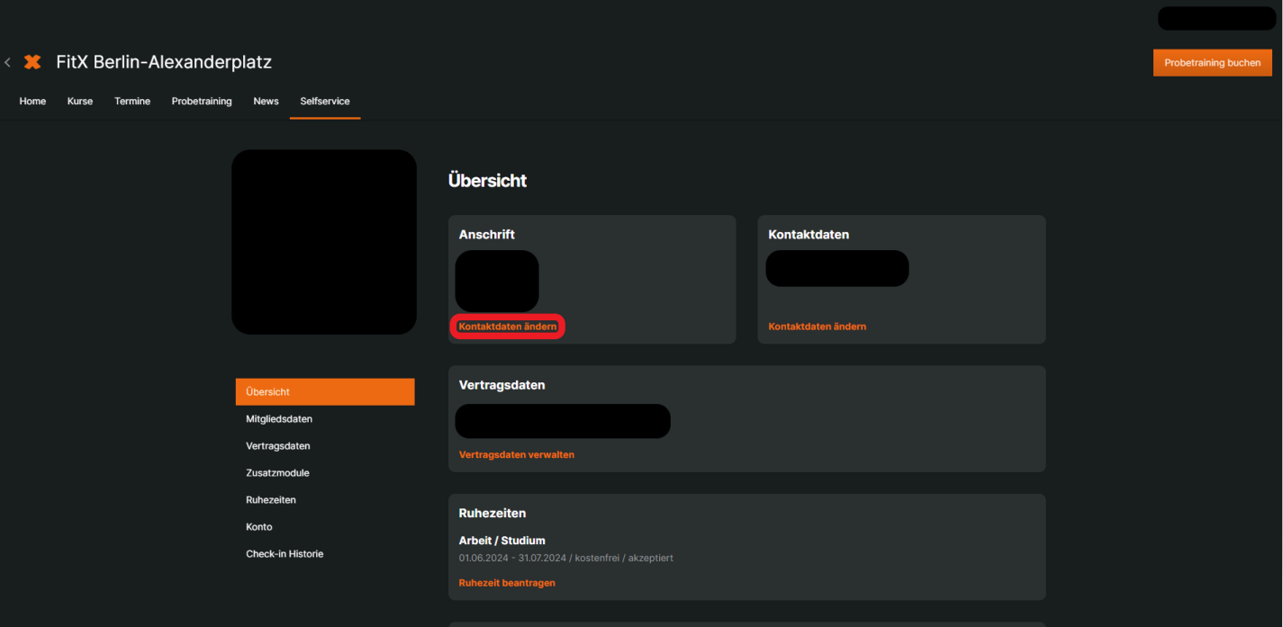 Logge dich dafür in deinen Selfservice ein und gehe zu „Übersicht“. Unter dem Reiter „Anschrift“ klickst du auf „Kontaktdaten ändern“, um deine Adresse zu aktualisieren.