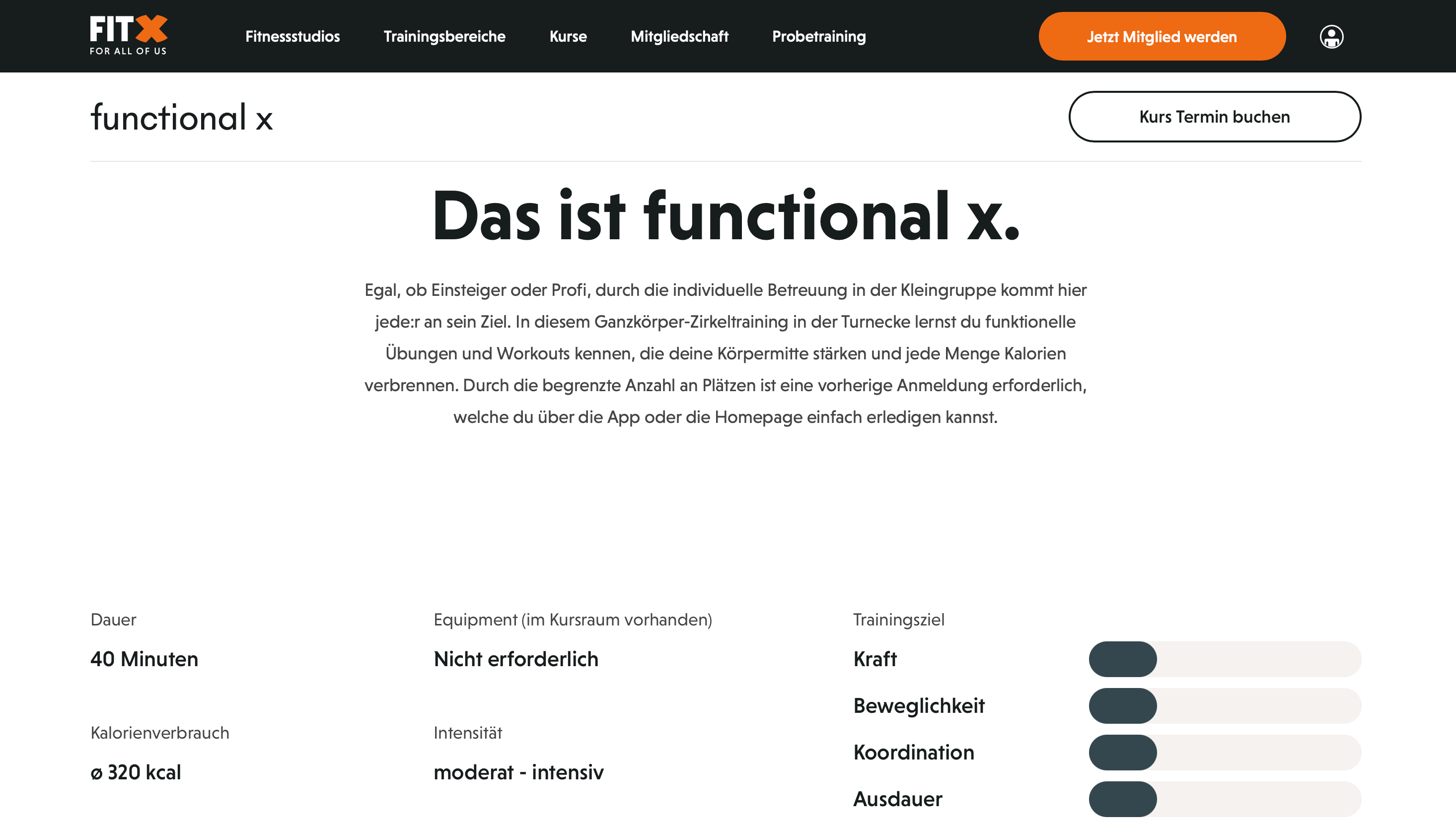 1. Öffne auch hier über "Kurse" den Kursplan oder nutze diesen Link: https://www.fitx.de/fitnesskurse/functional-x.