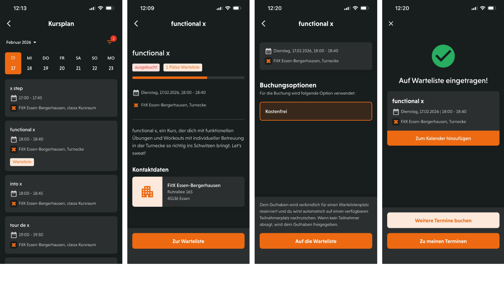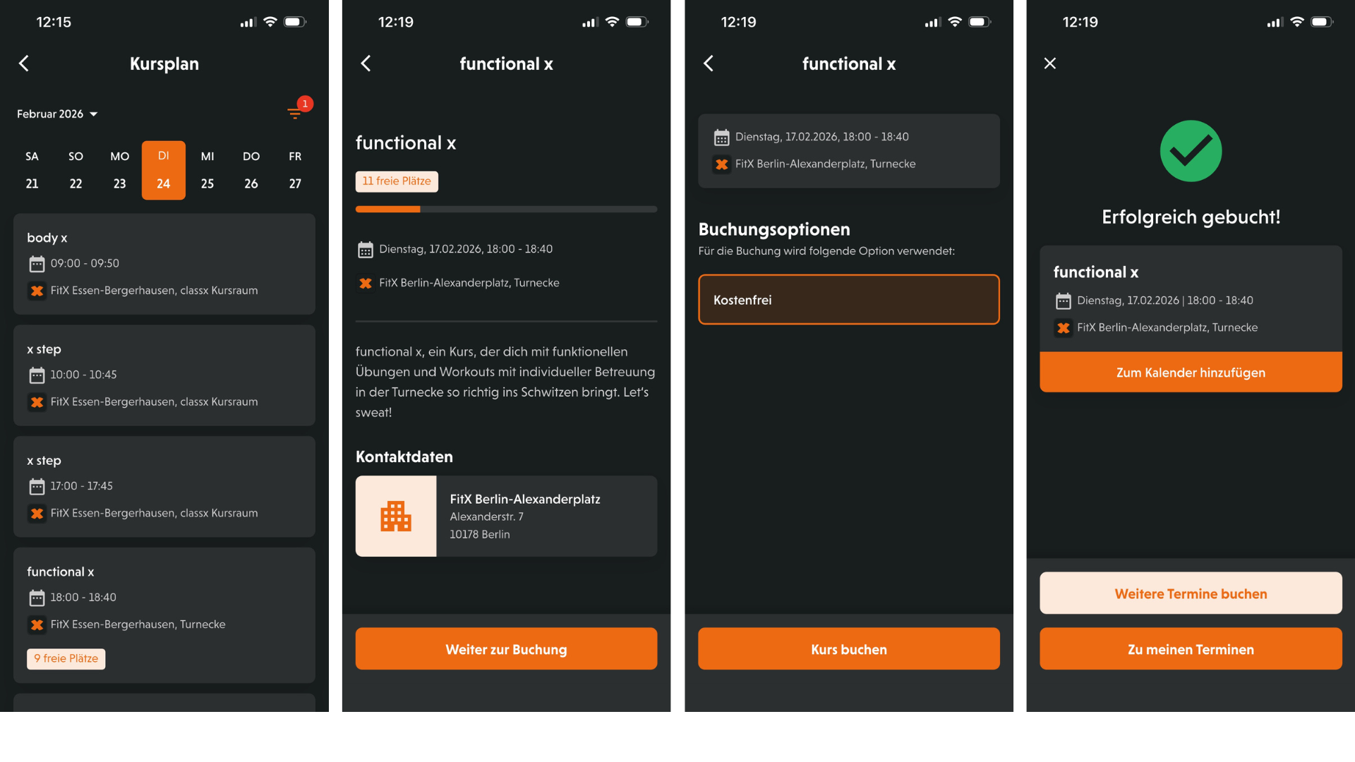 Bitte beachte, dass du functional x Kurse maximal 72 Stunden im Voraus buchen kannst.
