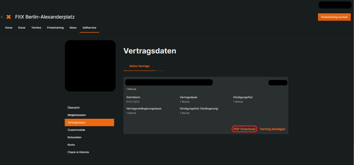 Wo finde ich meinen FitX-Vertrag?